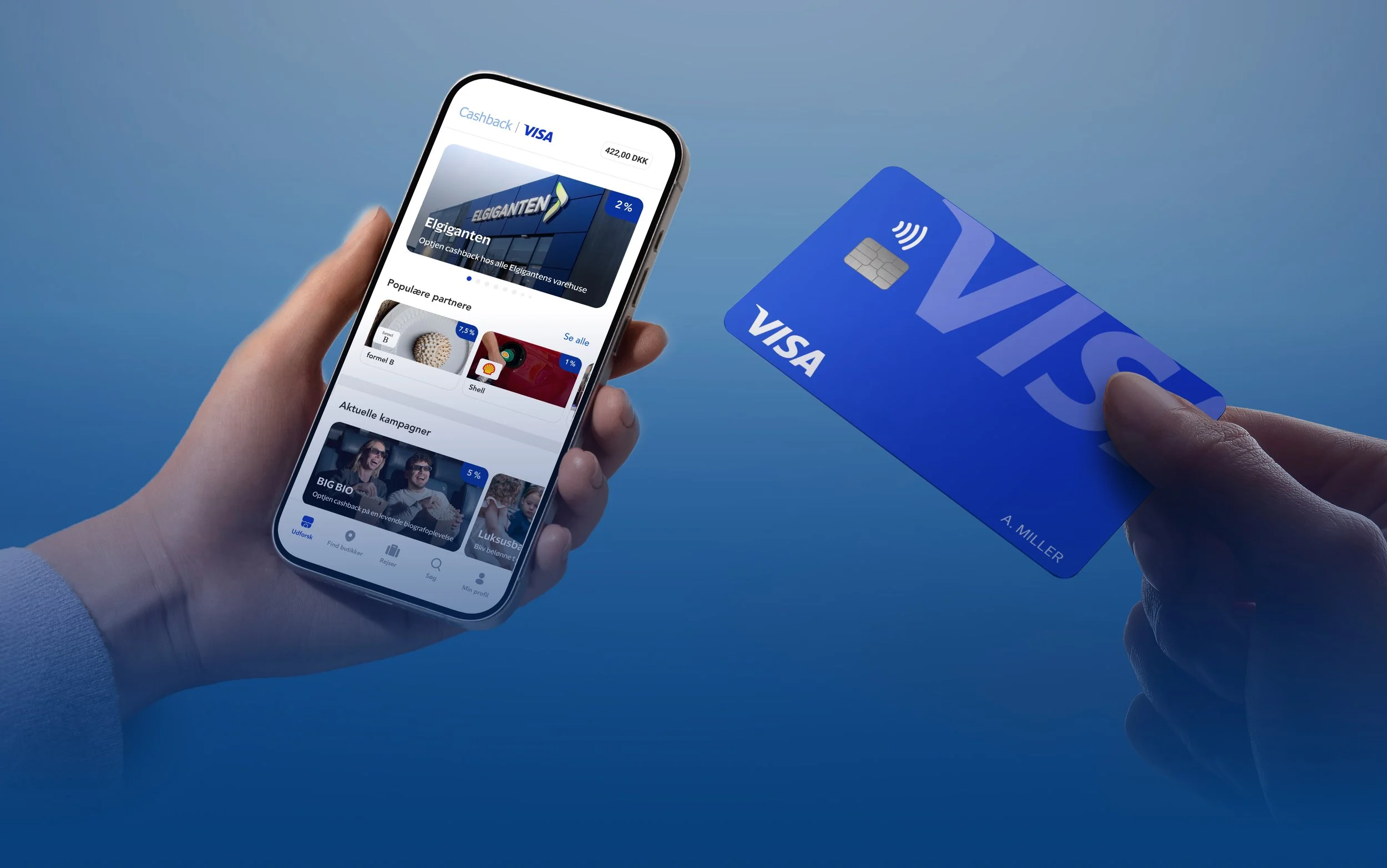 Over the past year, Visa Cashback has grown into one of Denmark’s most-used cashback products - connecting 350K+ linked cardholders and 400K+ members with 1,700+ merchants.